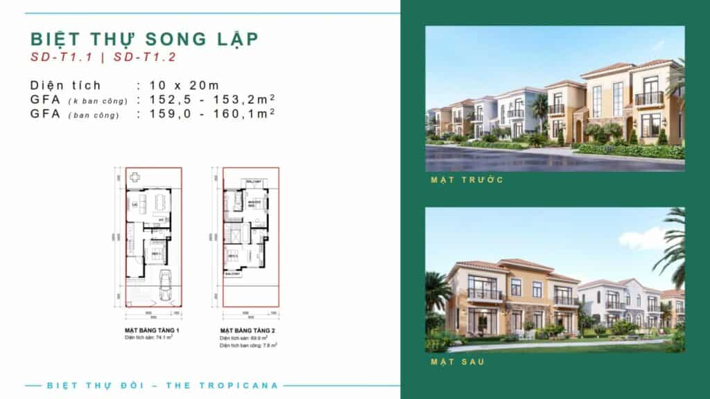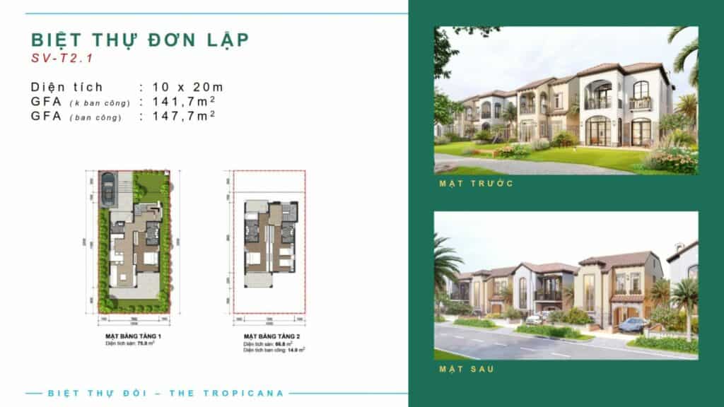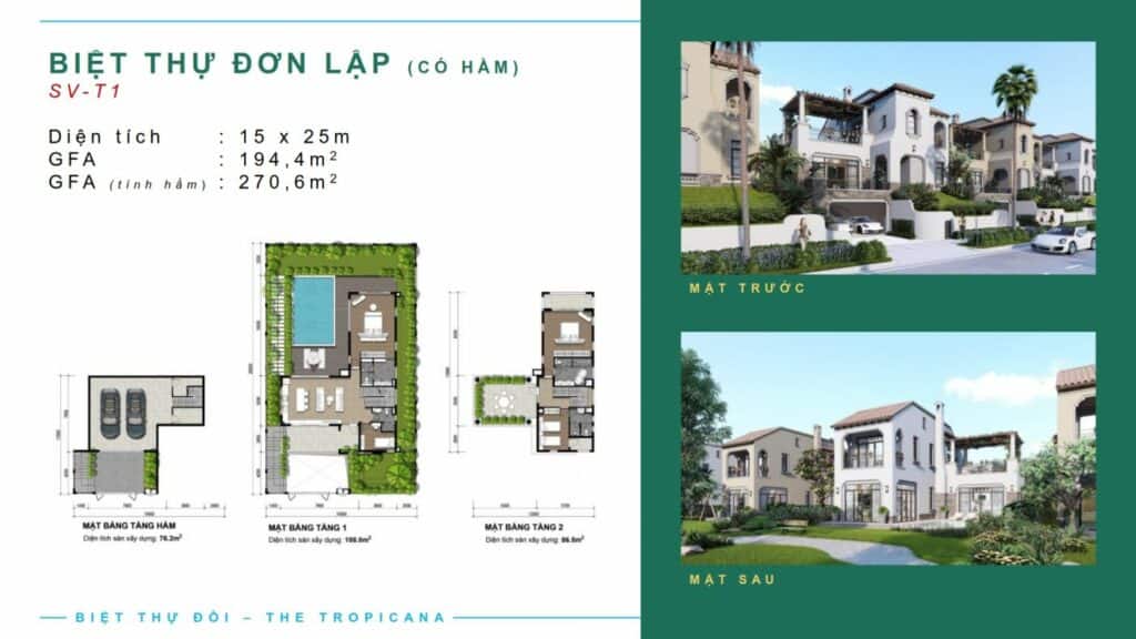 Các mẫu biệt thự đơn lập 15×25, 10×30, 12×30 m2 tại phân khu Biển – The Tropicana NovaWorld Hồ Tràm
