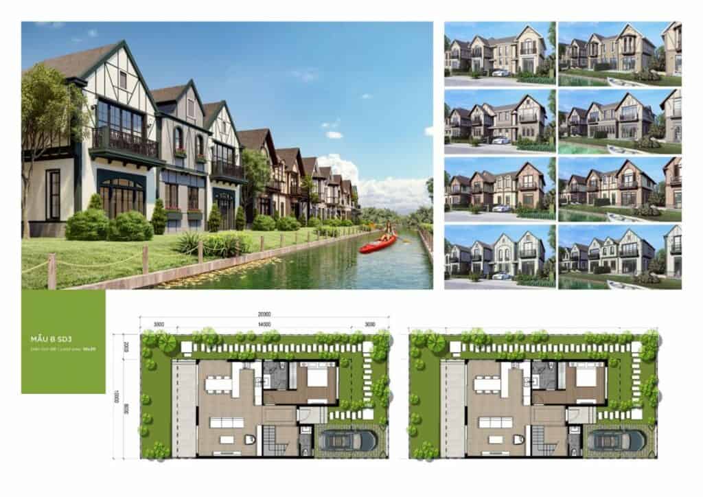 Các mẫu thiết kế biệt thự Hồ Lagoon cực kì ấn tượng và thơ mộng, gồm các loại diện tích 8×20, 10×20, 12×20, 15×20 m2