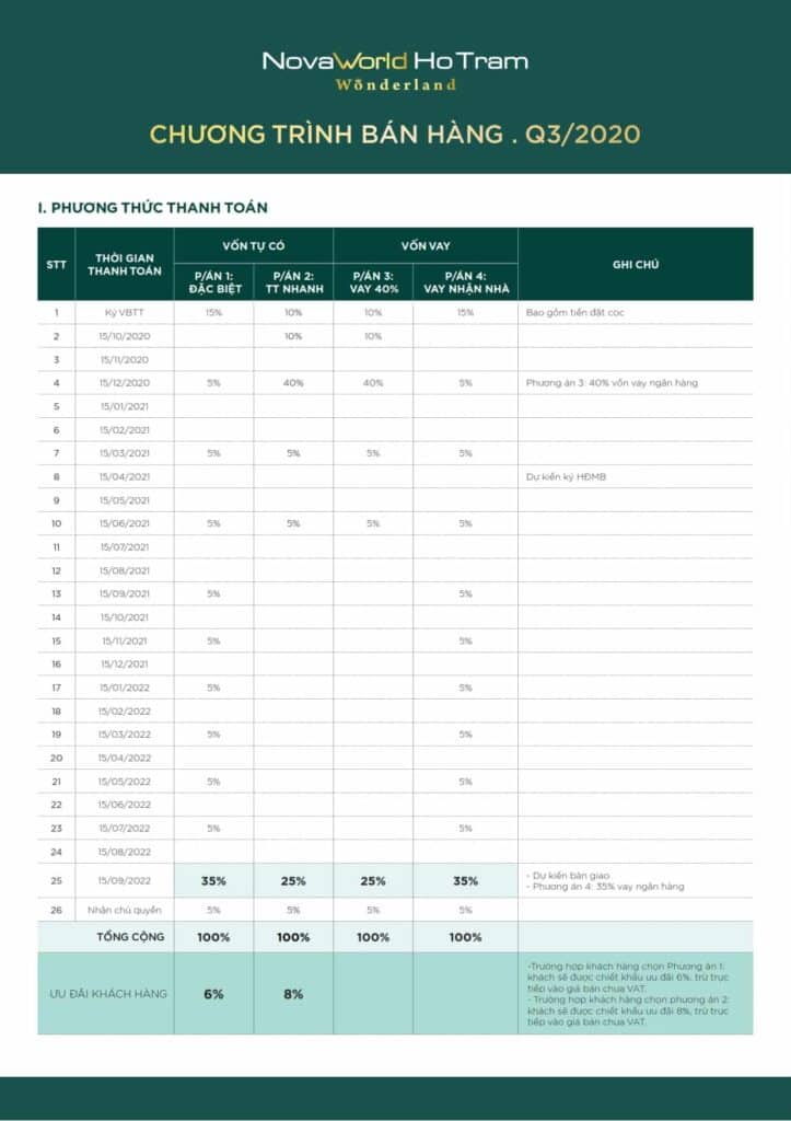 CHÍNH SÁCH BÁN HÀNG VÀ TIẾN ĐỘ THANH TOÁN