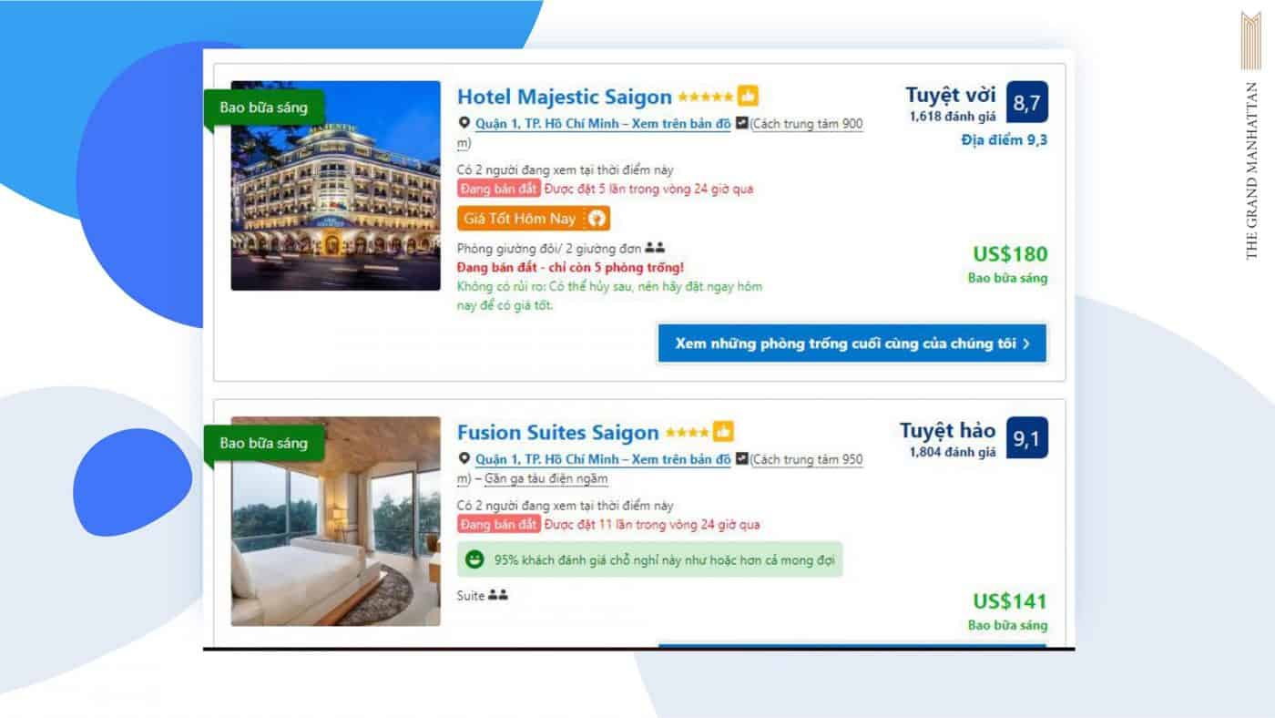 - Doanh nhân Trần Trang Cẩm Tú (Q.Tân Bình) chia sẻ: “đây là cơ hội hiếm có để tôi sở hữu BĐS ngay trung tâm Q.1. Do tôi làm trong ngành xuất nhập khẩu, đối tác nước ngoài khi sang Việt Nam đều phải ở khách sạn 5 sao, nhưng giờ đây việc tôi mang tới cho họ một không gian lưu trú đẳng cấp như The Grand Manhattan thì rõ ràng tôi không cần giới thiệu về mình nhiều, họ sẽ biết mình là ai và sự nhiệt tình của mình khi tiếp đón họ.”