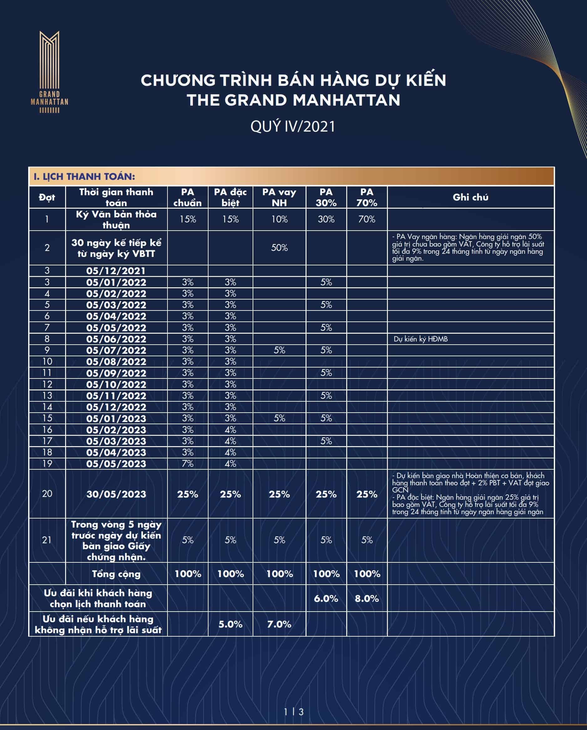 CHÍNH SÁCH BÁN HÀNG VÀ TIẾN ĐỘ THANH TOÁN