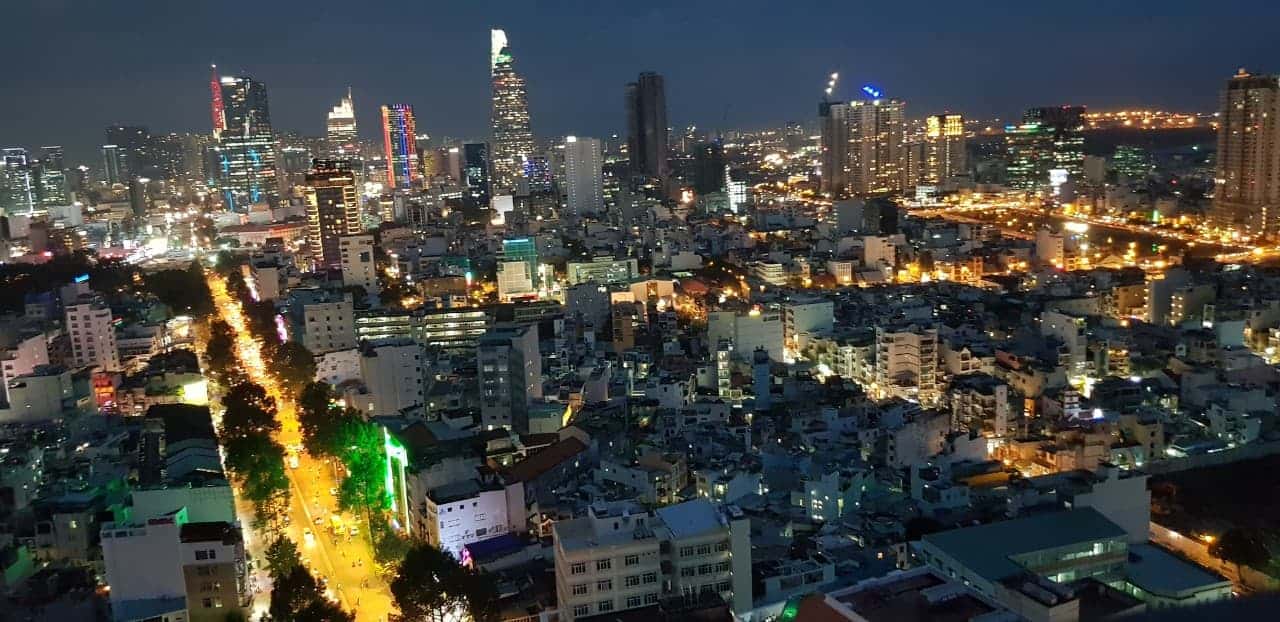 View đêm về xung quanh thành phố từ căn hộ Grand Manhattan Cô Giang quận 1.